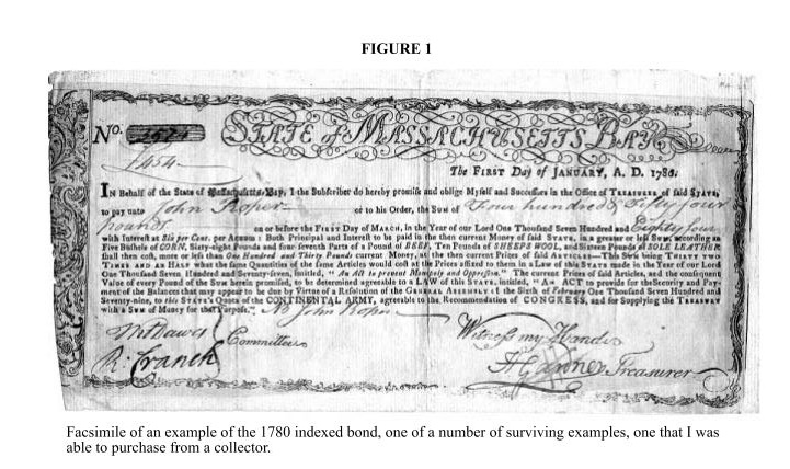 | Commonwealth of Massachusetts inflation-indexed bond, 1780, from Shiller (2003). |